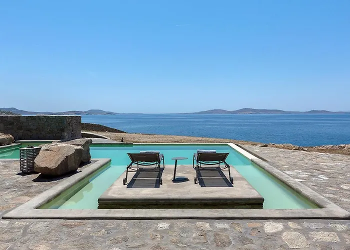 Villa Pergisos Mykonos距离Mykonos Town市中心仅有25分钟的短暂步行路程,提供带私人游泳池的海滨住所。 别墅有8间卧室,露台以及设施齐全的厨房。
